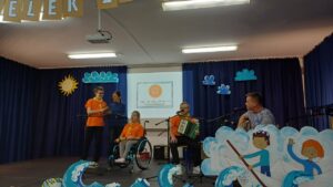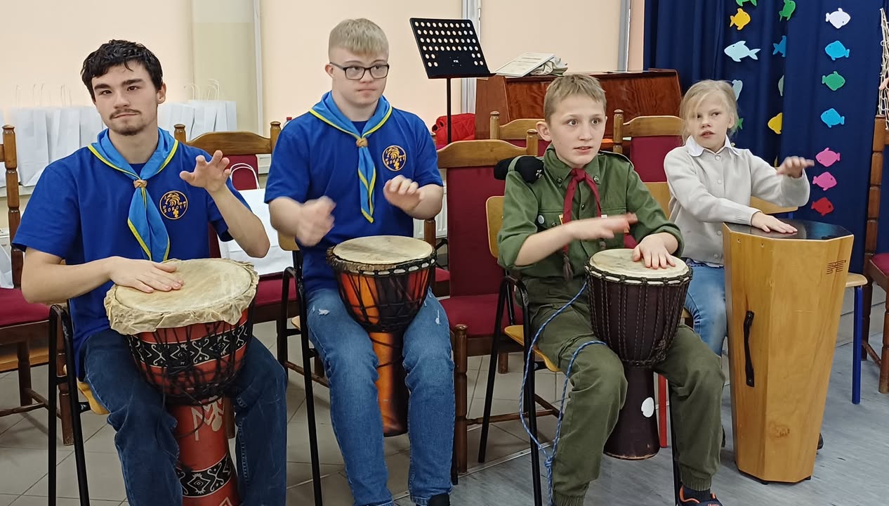 Po części artystycznej uczestnicy wzięli udział w inspirujących warsztatach muzykoterapii i choreoterapii, które poprowadzili terapeuci z Etnochowa Stowarzyszenie . Była okazja, by wspólnie grać na bębnach i instrumentach etnicznych, odkrywać rytm, ruch i swobodę wyrażania siebie.