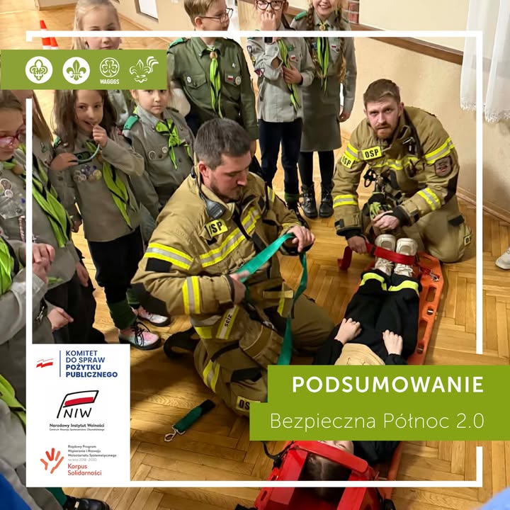 Projekt „Bezpieczna Północ 2.0” 👮 – wzmocnił kompetencje ratownicze i świadomość bezpieczeństwa harcerzy oraz kadry. Uczestnicy zostali doposażeni w elementy zwiększające bezpieczeństwo, a dzięki spotkaniom ze służbami i specjalistami zdobyli praktyczną wiedzę możliwą do wykorzystania w codziennej służbie.