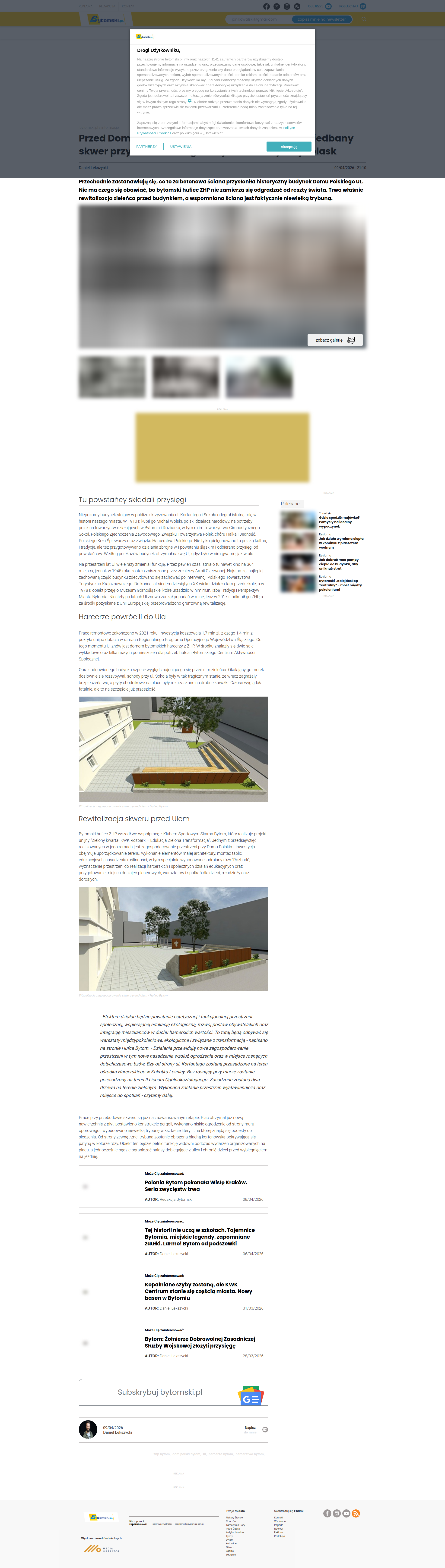 Przechodnie zastanawiają się, co to za betonowa ściana przysłoniła historyczny budynek Domu Polskiego UL. Nie ma czego się obawiać, bo bytomski hufiec ZHP nie zamierza się odgradzać od reszty świata. Trwa właśnie rewitalizacja zieleńca przed budynkiem, a wspomniana ściana jest faktycznie niewielką trybuną.