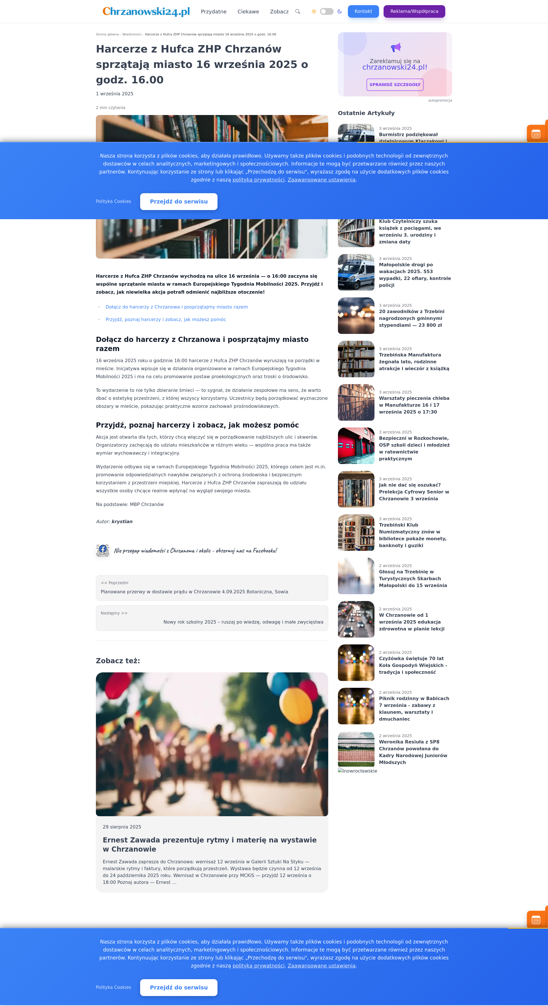 Harcerze z Hufca ZHP Chrzanów wychodzą na ulice 16 września — o 16:00 zaczyna się wspólne sprzątanie miasta w ramach Europejskiego Tygodnia Mobilności 2025. Przyjdź i zobacz, jak niewielka akcja potrafi odmienić najbliższe otoczenie!