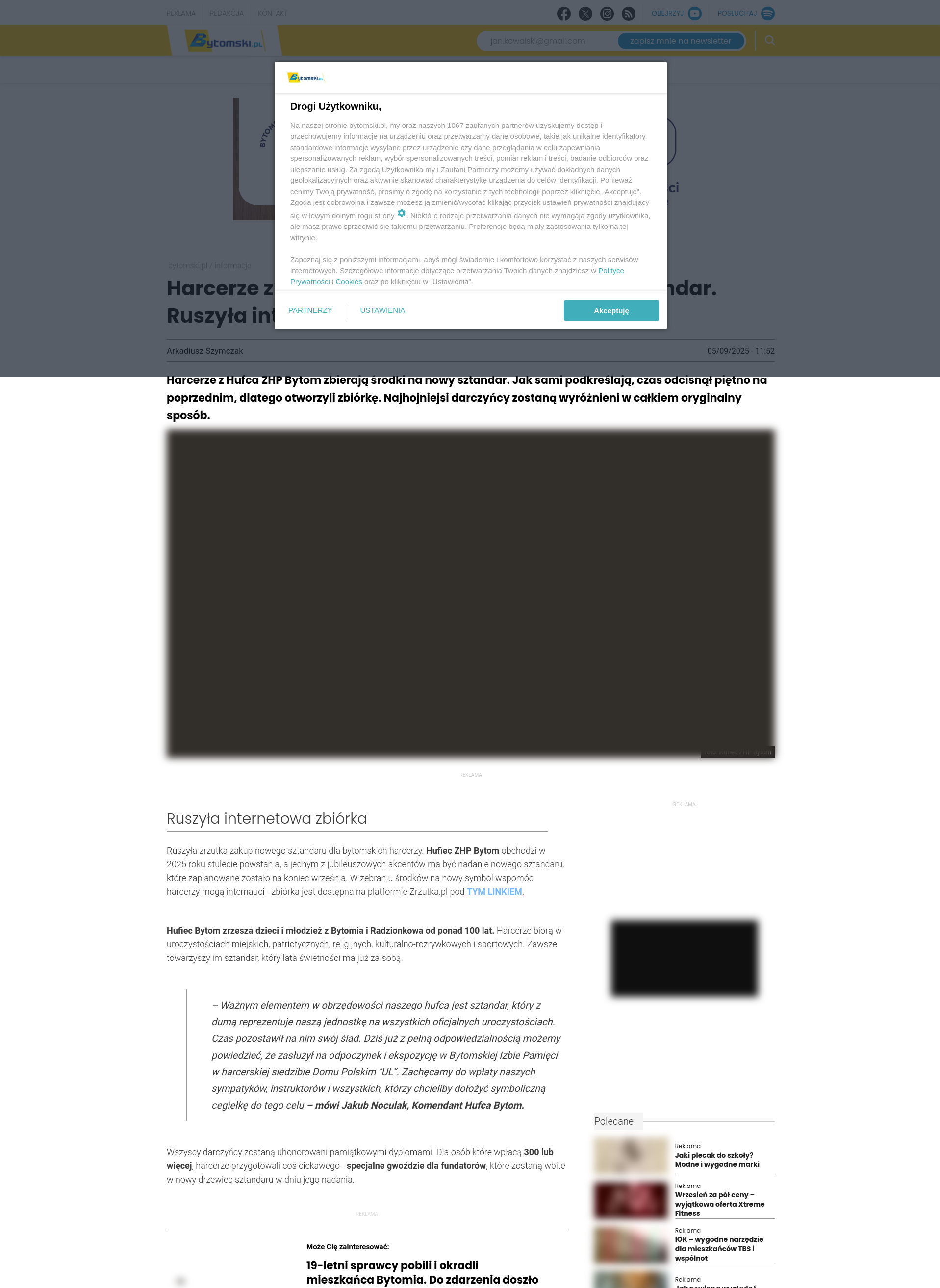 Ruszyła zrzutka zakup nowego sztandaru dla bytomskich harcerzy. Hufiec ZHP Bytom obchodzi w 2025 roku stulecie powstania, a jednym z jubileuszowych akcentów ma być nadanie nowego sztandaru, które zaplanowane zostało na koniec września. W zebraniu środków na nowy symbol wspomóc harcerzy mogą internauci – zbiórka jest dostępna na platformie Zrzutka.pl pod TYM LINKIEM.