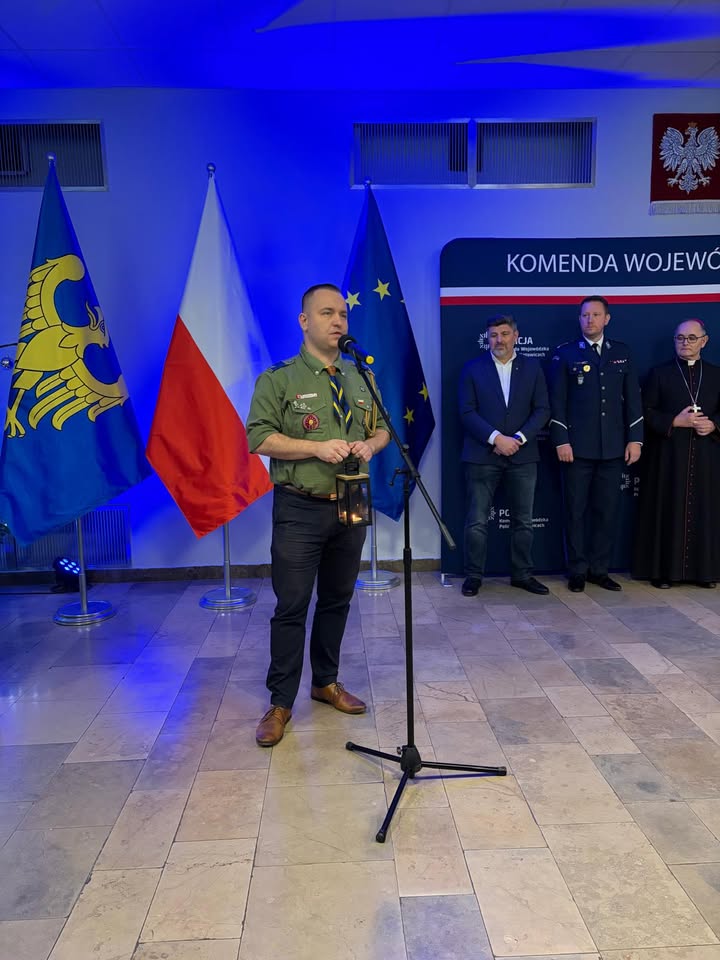 Członkowie Komendy Chorągwi Śląskiej ZHP również wyruszyli w drogę ze Światłem, niosąc tegoroczne przesłanie „Pielęgnuj dobro w sobie”. Z lampionem odwiedziliśmy wielu naszych partnerów – posłów i senatorów, przedstawicieli władz województwa, uczestniczyliśmy w świątecznych spotkaniach w Śląskim Urzędzie Wojewódzkim, Urzędzie Marszałkowskim, Sejmiku Województwa Śląskiego, Komendzie Wojewódzkiej Policji, Komendzie Wojewódzkiej PSP, instytucjach Parku Śląskiego, a także m.in. w Izbie Lekarskiej, WORD Katowice oraz w Zakładzie Doskonalenia Zawodowego.